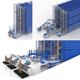 - Fully automated storage system for boxes, bins, totes and small parts.